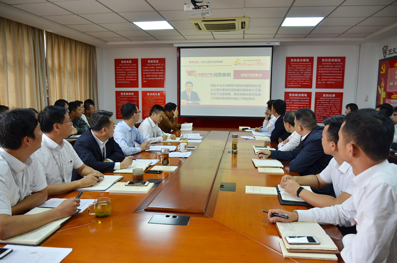 會上,紀檢委員榮剛為大家從問責原責、問責情形、問責方式、問責調(diào)查、問責決定、執(zhí)行時間等六個方面對《中國共產(chǎn)黨問責條例》進行全面解讀。新版《中國共產(chǎn)黨問責條例》由13條增至27條,內(nèi)容更加細致,職責更加明晰,提高了問責的政治性、精準性、實效性,體現(xiàn)了管黨治黨的與時俱進。黨支部書記、董事長許坤有在會上要求,公司各位黨組成員要進一步提高思想政治意識,充分履職盡責,牢固樹立政治意識、大局意識、核心意識、看齊意識。把學習《中國共產(chǎn)黨問責條例》與當前正在開展的“不忘初心、牢記使命”主題教育結(jié)合起來。