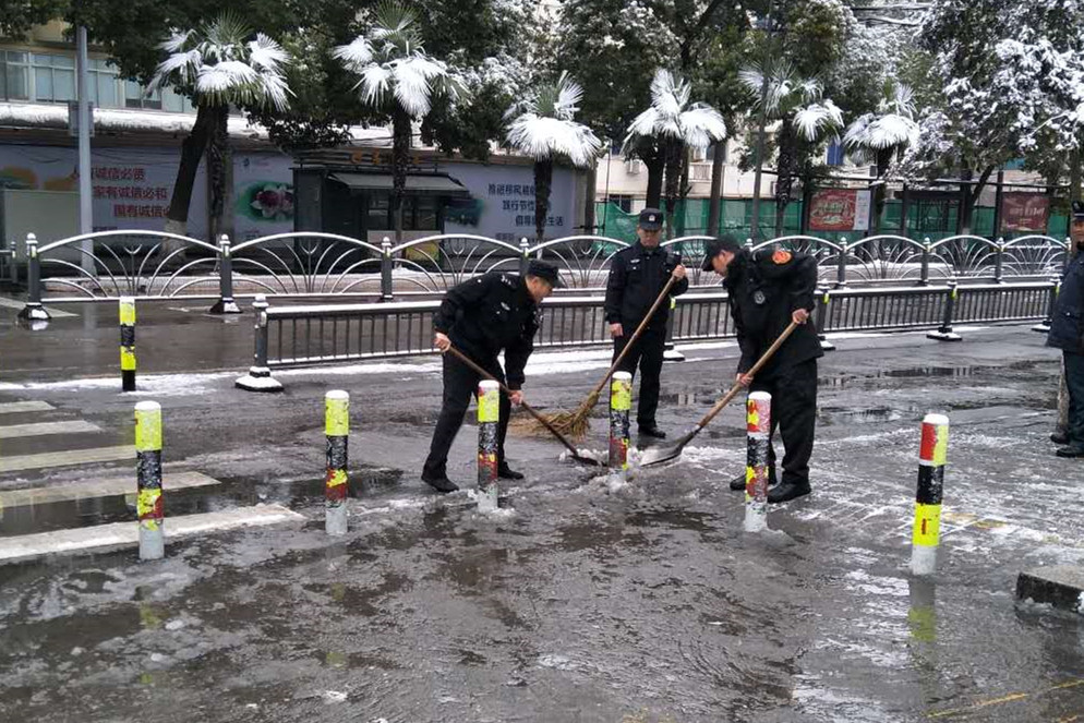 保安公司堅守崗位除冰掃雪保暢通