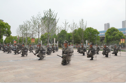 下午三時整,點驗大會在雄壯的《中國民兵之歌》中拉開帷幕,民兵訓(xùn)導(dǎo)員們?yōu)樵趫鰠藛T帶來了警棍盾牌操、防暴隊形、四會教學(xué)、搏擊操等科目表演,隊員們精彩的表現(xiàn)贏得了現(xiàn)場領(lǐng)導(dǎo)的一致好評。